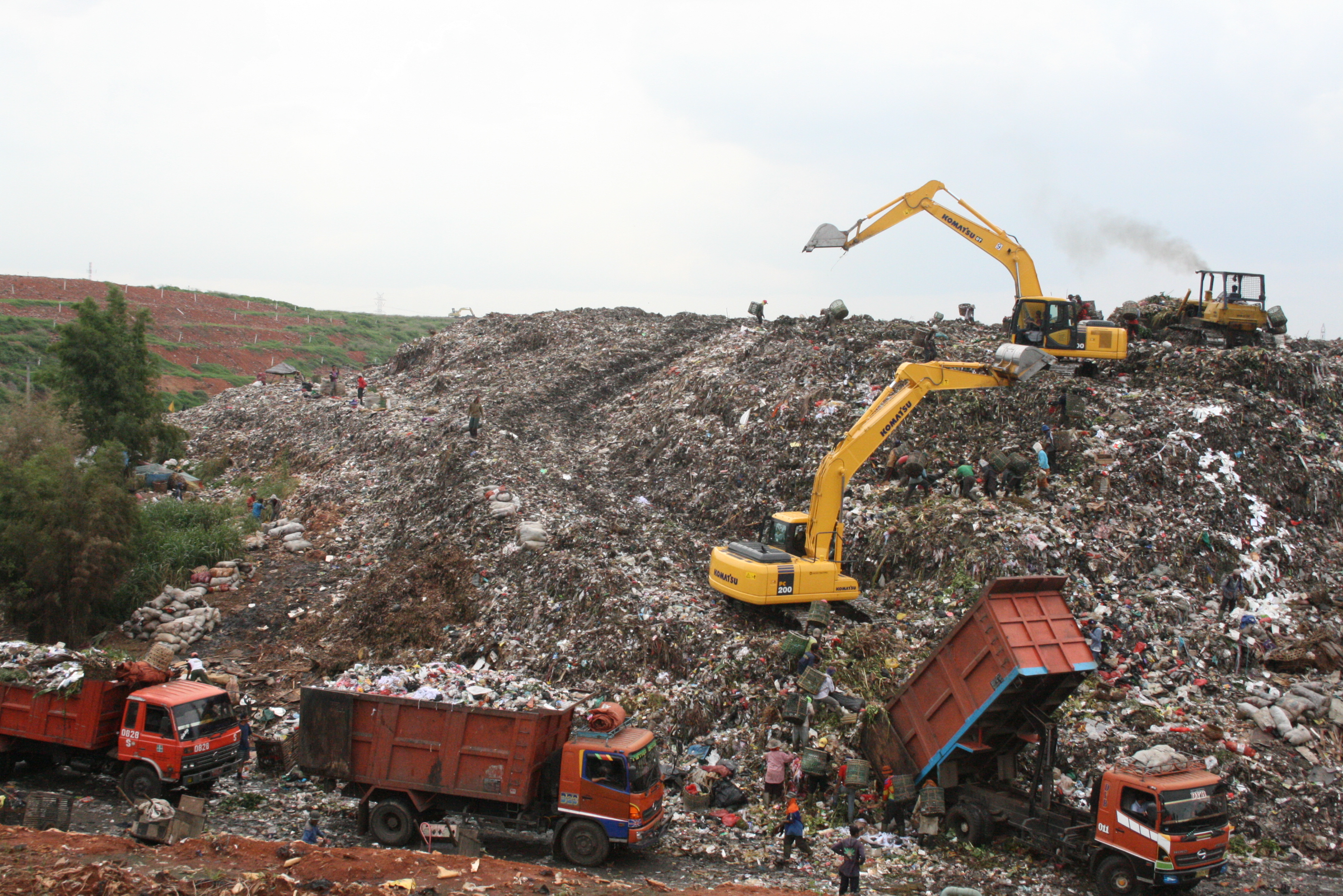 sesampah sampahnya. mobil-mobil pengeruk hilir mudik diatas pegunungan itu, sambil saingan sama ratusan pemulung