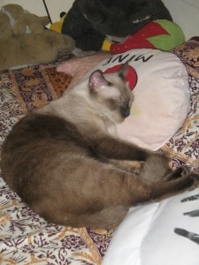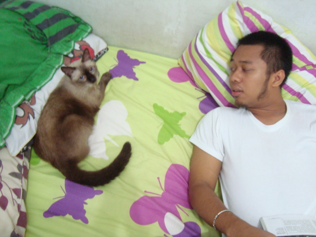 Sudah hampir dua tahun, Otong tidur sama saya. sudah berpindah pula saya dari Jatinangor ke Margahayu, Bandung. Saya, huff, memang mendidiknya dengan keras. Karena seekor siamese gak bertingkah layaknya persia yang anteng dan suka tidur dengan damai. Siamese 10 kali lebih aktif daripada kucing lokal Indonesia. Dengan suara yang berisik banget dan tingkah yang mencerminkan kecerdasan luar biasa. Bisa buka pintu, bisa buka jendela, bisa buka lemari. keposesifannya yang ngalahin anjing, egoisnya yang selalu mencerminkan perilaku “Kalo gue mau ya harus!” dan sprayingnya pas dia menginjak usia jantan siap kawin menandakan lokasi kekuasaan yang mutlak miliknya. Dia emang beda, karena itu, saya sering kesal. Capek pulang kuliah, rumah bau parah, semua berantakan dan disitulah si biang onar habis bertingkah karena gak suka saya tinggal lama-lama. Kekesalan saya seringkali berbuntut pertengkaran dengannya. Saat seperti itu, biasanya saya akan bersikap arogan dengan mengurungnya di dalam kandang (hal yang paling dia benci) dan memakinya. Saya gak pernah sadar kesalahan saya, sampai akhirnya suatu hari.