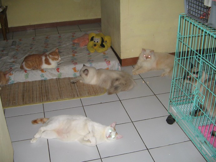 Tuhan kirimkan mereka untuk tenangkan hati saya. Temani bahagia saya. Tanpa maksud lain, tulus, ikhlas… Begitu, akhirnya saya mulai menjatuhkan pilihan pada kucing. Hewan yang senang bebersih, enak dipeluk dan seneng main. Mulai dari kucing liar yang dating sendiri kerumah, sampai kucing berbagai ras yang dengan kesadaran penuh saya beli dari breeder.