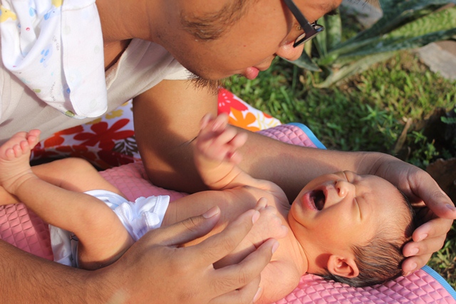 3 hari di rumah sakit. Akhirnya Abib pulang. Kerumahnya, ke box nya di kamar kami yang udah disiapin sejak dua pekan sebelumnya. 4 hari pertama kehadiran Abib, dia bangun tiap malam, dan siang tidur kaya kucing. Saya dan poento kebangun tiap sejam sekali. Tapi, enggak, gak ada masalah. Kami bangun sambil ketawa. Tugas Poe, yang tidur di pinggir, adalah ngambil si bayi nangis dari boxnya kemudian “Knock2 enyaaak…baby delivery, hungry baby, please feed him!” dan saya netein. Daddy nya tidur lagi. Kalo basah, kita bareng2 ganti popok dan bedongnya. Poe akan bergeser ke lemari, ambil semua yang diperluin dan saya yang ganti, trus langsung netein lagi.
