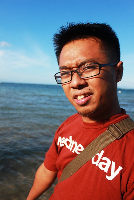 Nah kalo foto Poe yang ini diambil di Pantainya Bali Khama, Nusa Dua, Bali. Kepanasan dia kayanya… 🙂