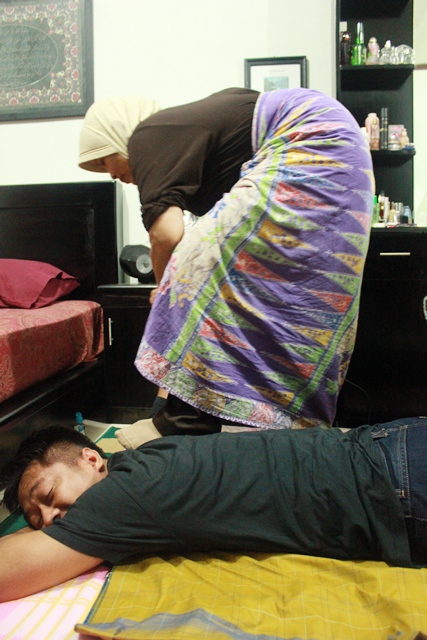 Akhirnya, tiba juga giliran saya. Tapi bagian saya, tentu saja enggak ada fotonya ya. PORNO ah! Hehehe…oke, jadi kalo dipijat sama Bu Pono, janganlah ngebayangin dipijat macam di spa. Karena intronya aja udah kenceng. Kayanya dia biasa angkat beban deh, kuat banget tangannya. Pas saya sambil ngobrol, biar ga terlalu berasa sakitnya, ternyata dia itu udah mijat dari jaman si Gio (suaminya Inon) baru lahir. Means jaman saya baru lahir juga. Kaget, karena mukanya enggak keliatan se-tua itu. Tapi jadi ngarti, pantesan aja berpengalaman banget.