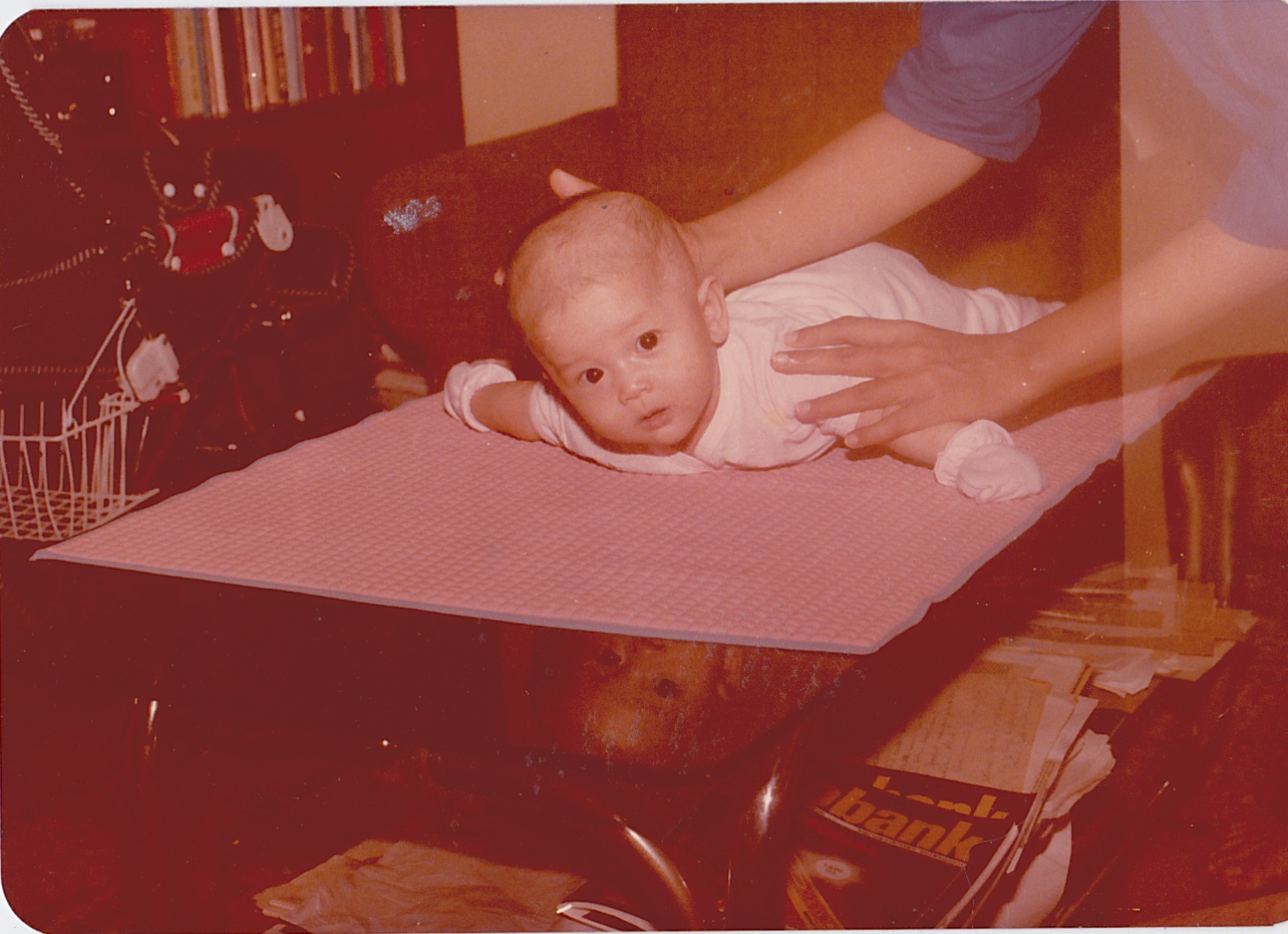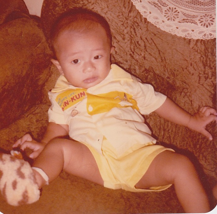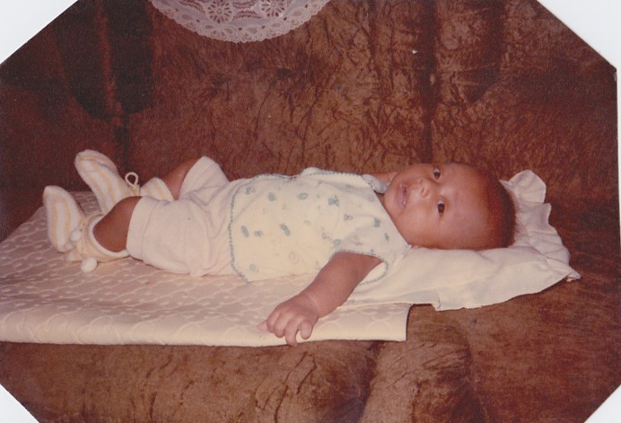 Ini foto saya waktu umur 4 bulan, kayanya. Soalnya masih pamer bisa tengkurep sambil angkat kepala. Hehehe,,,
