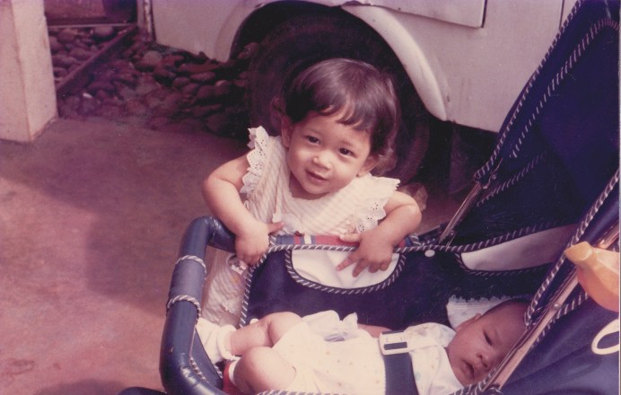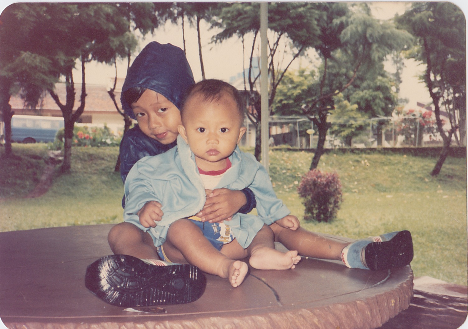 Kemarin saya sempet ngebongkarin gudang, dan nemu foto-foto lama jaman kecil punya saya dan Poento. Nyebelin, karena semakin menguatkan statement bahwa Abib 11-12 banget mukanya sama si Daddy. Tapi ternyata kocak, karena ada beberapa foto yang common antara masa kecil saya dan Poe.