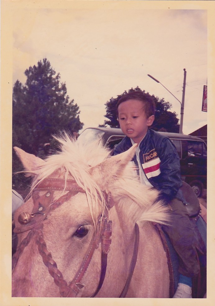 Foto dibawah ini adalah foto kami sama KUDA. Ahahaha…ini common juga ya jadi hiburan bocah jaman dulu. Cuma, saya gabisa menemukan foto saya naik kuda di depan masjid Salman ITB waktu masih seumuran Poe di foto-nya. Kayanya ada dirumah mamah atau dirumah nenek. So, cuma ada foto saya naik kuda di Parangtritis, ini udah umur 8 taun. Sementara Poe, di foto ini, baru umur 4 tahun-an.