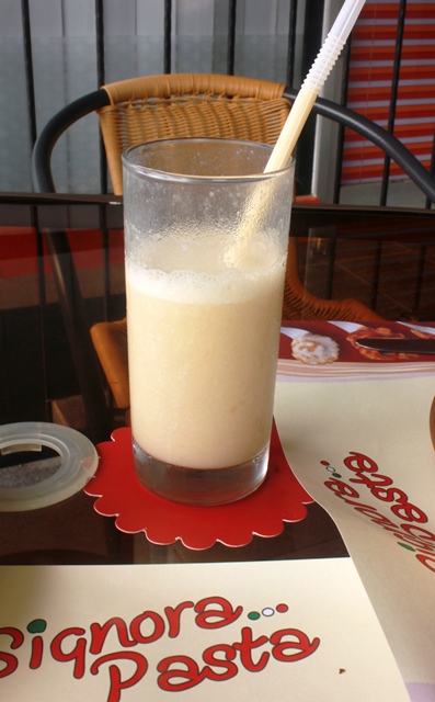 Makan di Signora Pasta emang yummy. Bisa delivery, tapi kayanya enakan makan di tempat, karena suasananya seru dan hangat banget. Belum lagi ditambah kelakuan lucu si Pino dan iringan musik a la Italy yang dia nyanyikan. Iya, dia akan memainkan keyboard nya kemudian bernyanyi lagu2 italy. Kadang2 dia juga menyanyikan lagu2 request yang dia nyanyikan dengan terbata-bata. Hehehe..