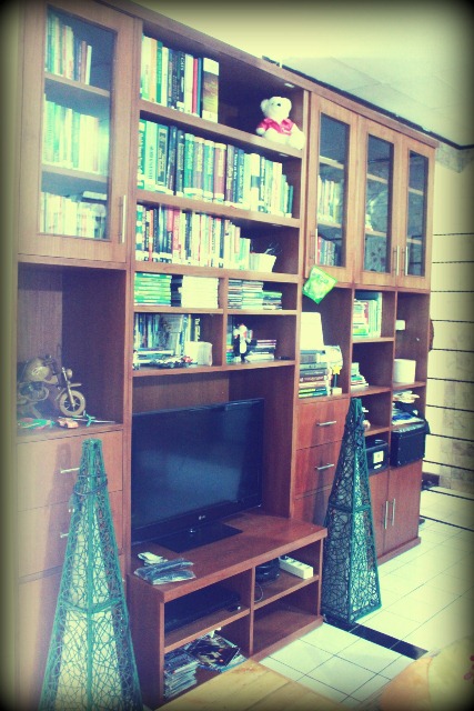 Terakhir, sepekan lalu, akhirnya, lemari kami jadi. Lemari ini, adalah lega dari segala lega yang bisa saya rasakan sejak punya rumah sendiri. SUPER LEGA! Kenapa? Karena lemari besar ini, nabungnya ampun2an susahnya. Harganya emang lumayan mahal, Rp 8 jutaan. Tapi, itu lebih murah ketimbang beli. Ukurannya gede banget loh. Bisa muat lebih dari 1.000 buku. Kok tau? Ya tau lah, karena saya sudah meng organize buku-buku saya yang jumlahnya 830 buah, dan masih banyak space kosong.