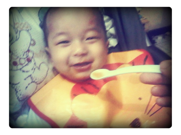 Dapetlah sekitar 10-15 sendok. Sisanya saya yang ngabisin. Hehe. Gapapa, namanya juga kenalan. Toh di standar kecukupan gizinya, makan pertama, 3-5 sendok aja cukup. Dan ngedudukin bayi buat makan gak boleh lebih dari setengah jam. So, saya santai ajah.