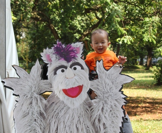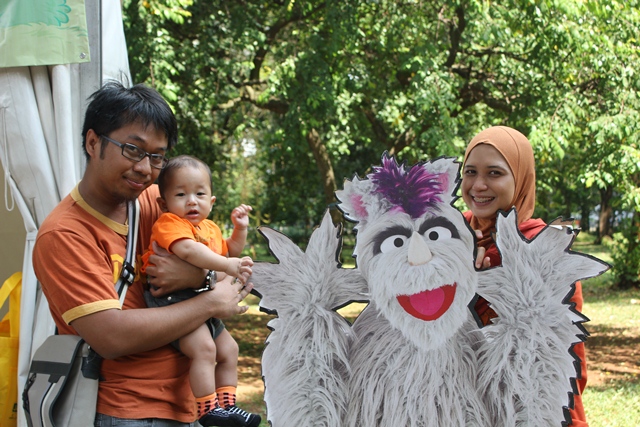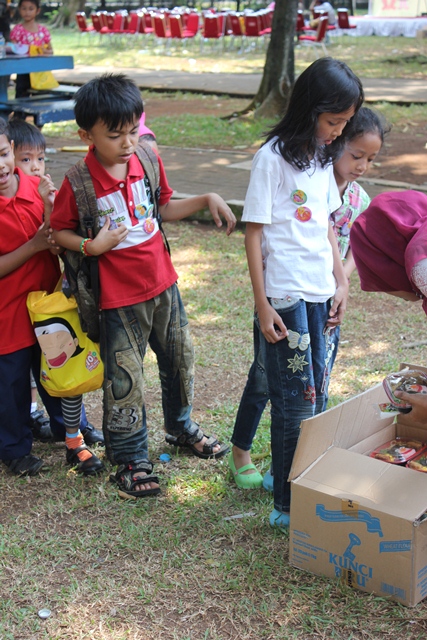 Akhirnya kita baru sampe ke senayan jam 12. Sedih juga. Padahal pengen banget liat story telling nya, foto2 sama putri, tantan, momon dan Jabrik. Pengen juga motret anak2 bocah lagi berkegiatan. Gak kesampean.