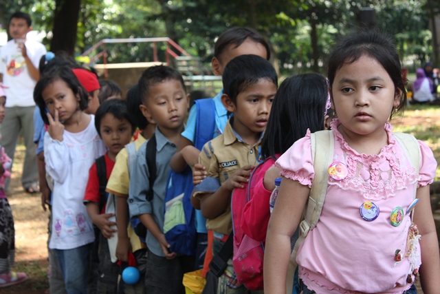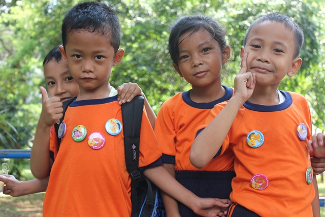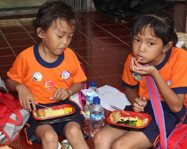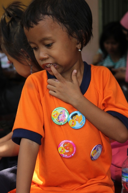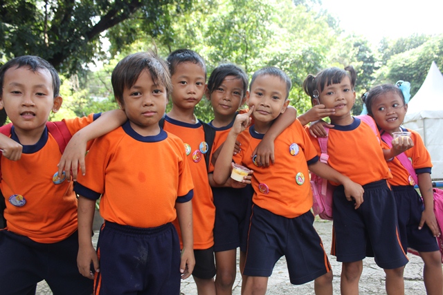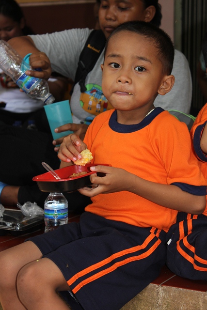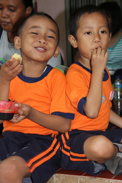 Tapi, ada lah dapet beberapa foto bocah2 lagi makan. Jadi tambah lucu, karena anak2 itu pake baju orange. Haha!!