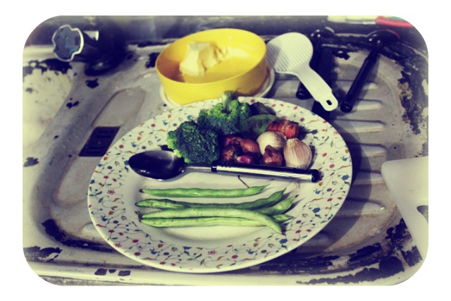 Ini bahan-bahan dasarnya. Perlu diingat, bib, He’s good into details. Dia selalu bisa masak dengan hasil yang JAUH lebih rapi ketimbang masakan enyak, dia bisa mencacah JAUH lebih halus daripada hasil cacahan enyak yang acak2an dan gak ada cakep2nya, dan dia mampu memerhatikan bahan makanan yg msh bagus/tidak ketimbang enyak yang suka seenaknya main cemplung2 aja. Hehehe..