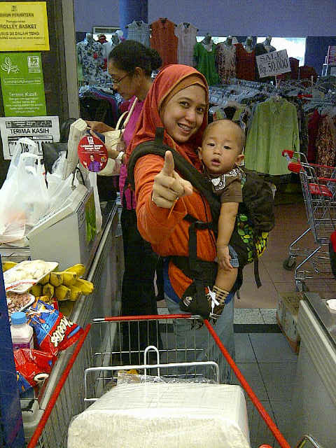 Well, sampai Abib memasuki usia 10 bulan awal, saya masih make sleepy wrap buat gendong dia kemana-mana. Hingga akhirnya saya menyadari bahwa berat anak bayi ini sudah bukan 4-5 kilo lagi. He’s close to 10 kilos now.