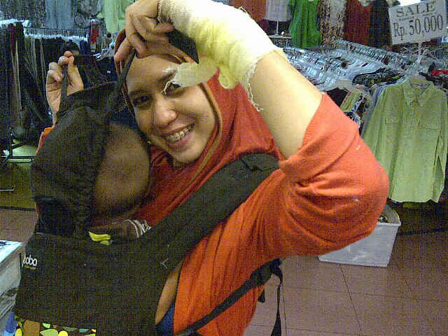 Tapi ya, kalo menurut saya, newborn sampe 10 kilo sih masih nyaman pake sleepy wrap. 10 kilo sampe 25 kilo, baru deh pake boba carrier. Hehehe..