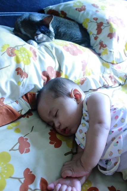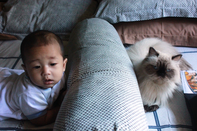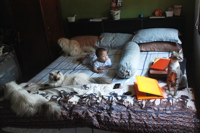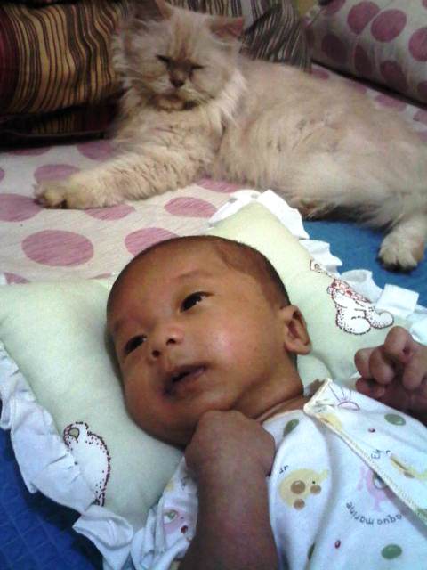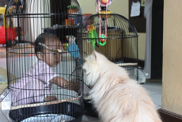 Burung, Bayi dan Kucing. Akur.