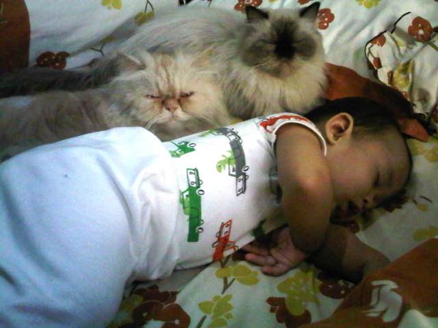 Ini masih umur 2 bulan, Tetehnya juga masih ada. Kucing yang jiwa keibuan nya tinggi banget ini, selalu aja ngintilin Abib kecil yang belom bisa apa-apa ini. Dia pikir anaknya, barangkali. Hehehe