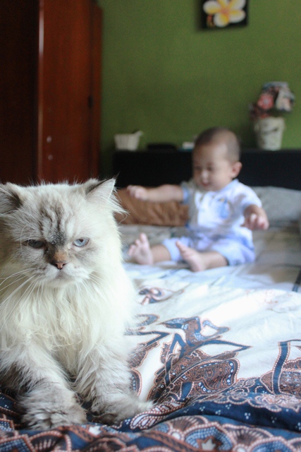 Ovy, tipikal kucing yang BENCI banget sama anak kecil. Denger suaranya aja kabur. Tapi sama Abib enggak dooong…