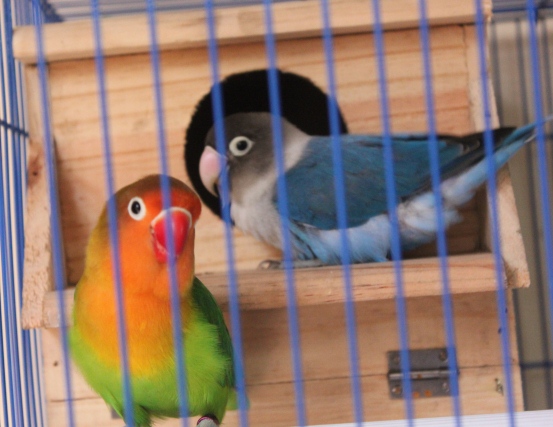 Maka, saya mulai lah cari tau soal burung yang disebut ‘lakbet’ di jatinegara. Ternyata namanya LOVEBIRD. Hahaha…dan saya ketemulah berbagai penjelasan, foto plus video2. Yang membuat saya semakin JATUH CINTA. Jadi, lovebird itu adalah burung yang punya kepribadian macam kucing siamese. Nyaring, dominan, sangat butuh teman (kalo kesepian bisa stress dan mati), bahkan bisa keluar kandang dan bersosialisasi di dalam rumah. Layaknya burung-burung yang masuk di golongan parrots. Tapi ini ukurannya kecil.