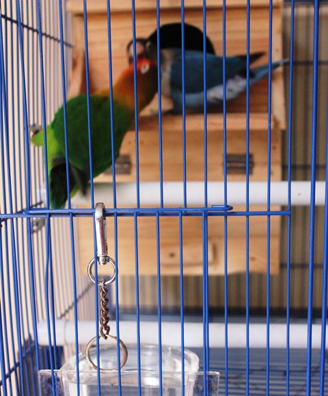 Ehm, belakangan, saya lagi punya TAMBAHAN kesibukan baru. Yakni, menjodohkan dua ekor anggota keluarga baru kami, Fiona dan Mario. Sepasang lovebird.