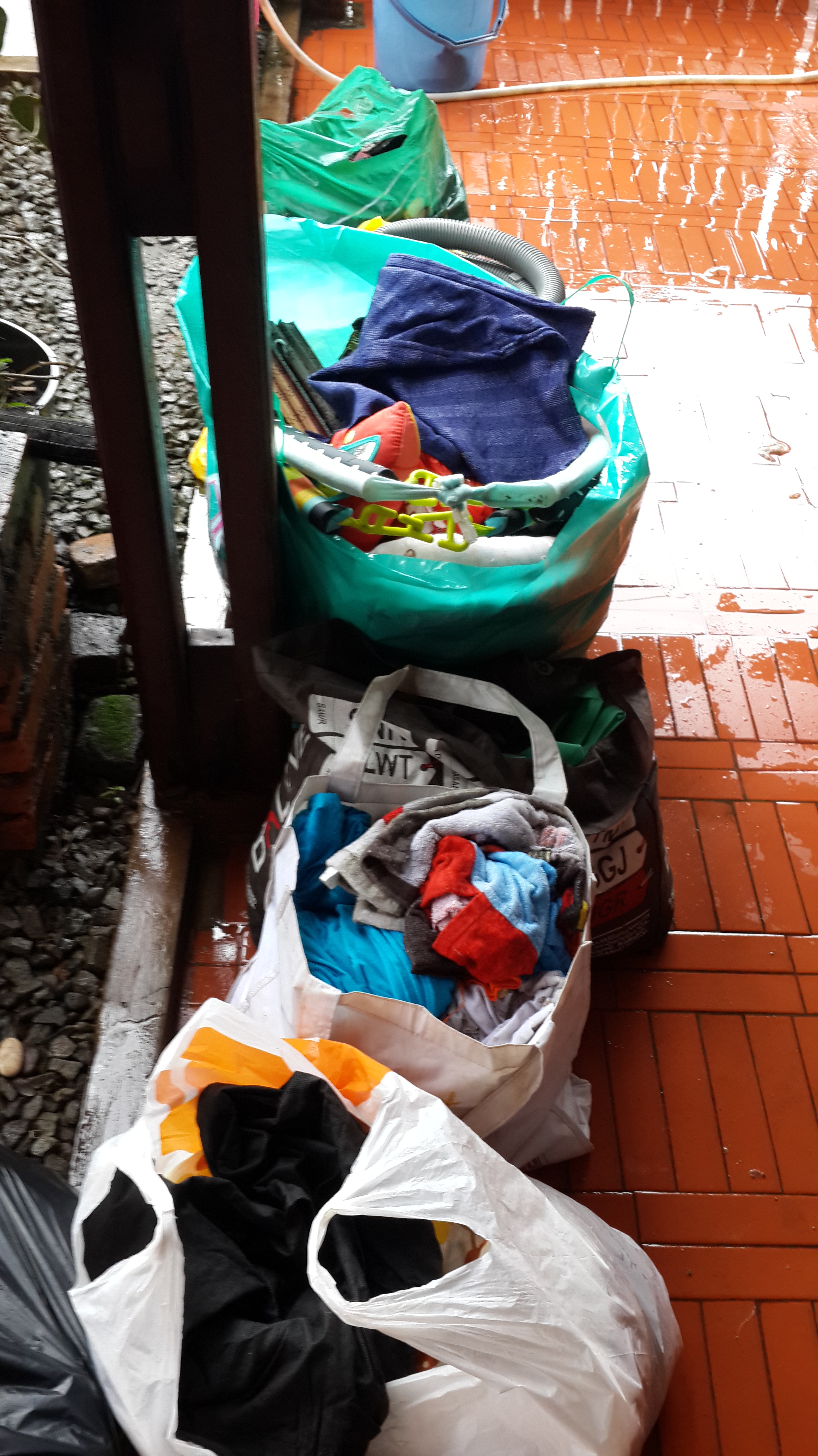 Rumah rame banget dari jam 10 pagi sampe jam 4 sore. Beberes, angkat barang, cuci2. Saya ternyata lupa amankan lemari seprai dan lemari baju citra yang bagian bawah. Ada juga 1 buah kontainer plastik yang terguling jadi isinya basah semua.