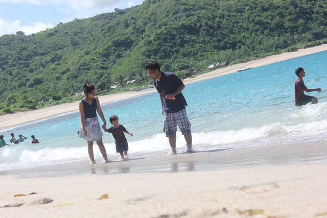 Jadi, di Pantai tanjung Aan, ada dua jenis pasir. Hehe..ada separuh pantai yang pasirnya halus seperti pantai pada umumnya. Sementara separuh lagi, pasirnya besar-besar seperti merica, persis pasir di Pantai Kuta. Keren ya?
