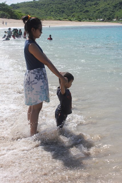 Jadilah kami berenang di air asin yang bening, ditarik dan didorong ombak. SENANG BETUL rasanya.