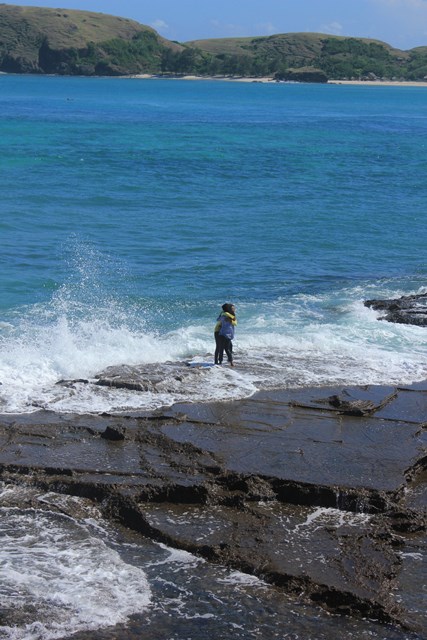 Lagipula, mau gak mau. Baru jalan 5 meter dari bibir pantai, ombaknya sudah menerjang sampai setinggi pinggang. Untung kemarin udah beli cover buat android dan kamera, jadi aman deh kena basah. Katanya sih di pantai-pantai selatan ini, setahun sekali, muncul cacing nyale. Iyes, Cuma setahun sekali. Kalo dongengnya sih, cacing nyale itu perwujudan dari seorang putri dari kerajaan setempat yang menceburkan diri, karena galau gak bisa milih cowok. Festivalnya sih di pantai Kuta Lombok, jadi masyarakat beramai-ramai datang untuk menangkap cacing legendaris tersebut.