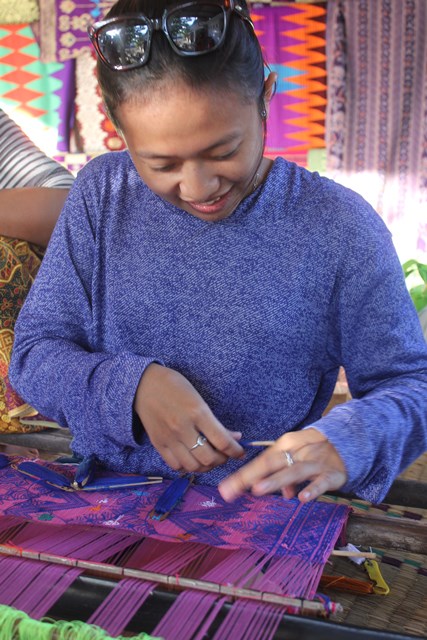 Oiya, di desa ini saya LUCKY karena dapet kain tenun versi tebel sepanjang 2,5 meter dengan harga Cuma 200 ribu. Tapi juga bad luck, karena kena 300 ribu buat kain tenun songket benang emas. (sebab, ternyata di toko oleh-oleh harganya Cuma 150 ribu)