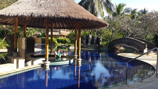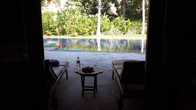 Dan di hari kedua ini, saya bangun pagi dalam keadaan segeer dan bahagia. Ya gimana enggak, bangun-bangun, buka pintu, yang kedengaran suara ombak. Aishhh romantis banget. Seduh lemon hangat, dan selonjoran depan kolam. (oooh iya tentunya saya tetap bawa lemon dong…hahaha)