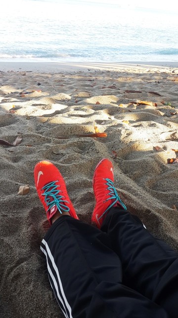Maka, saat lagi duduk manis itu, saya jadi mikir. Sayang2 amat udah bawa baju dan celana lari, tapi enggak pernah ngerasain lari di Senggigi sama sekali. So, BEACH RUNNING!!!! Huhuyy