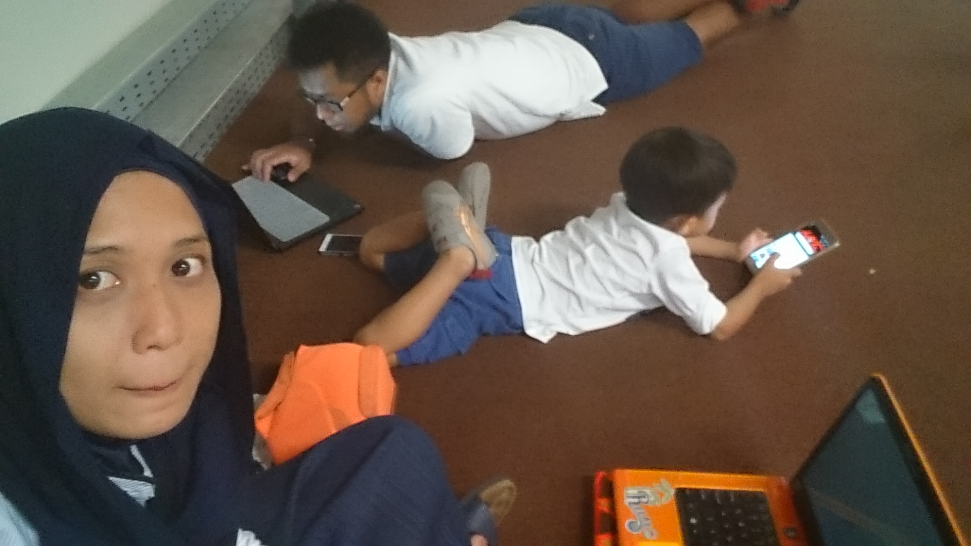 Tapi ya mau marah-marah juga percuma toh, akhirnya saya dan poe buka laptop buat menyelesaikan kerjaan yang tertunda. Sementara Abib, hehe, main game. Gapapalah ya sekali2 namanya juga liburaaaaan..