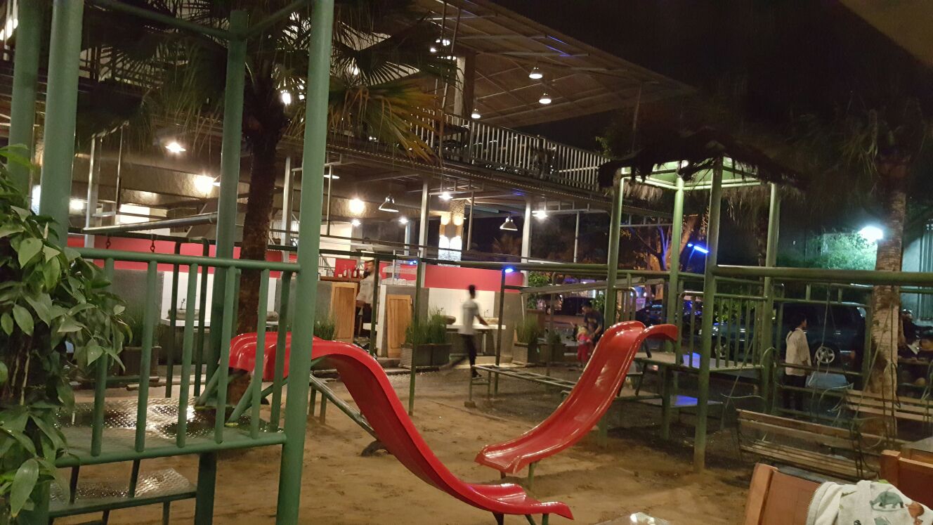 Dan sampe kamar, kita Cuma mandi, ganti baju, lalu pergi lagi makan malem ke warung wareg. Gak jauh dari situ. Makan malem lumayan enak pake gurame goreng, sambel apel yang rasanya lucu, rebusan sayur, dan tahu tempe. Enak lah. Udah gitu tempat makannya juga enak sih, Batu kan adem, ditambah ada playground buat Abib.